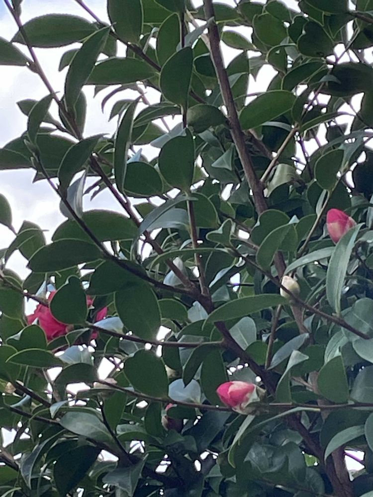 日陰で北風に晒されてるサザンカ🌺͛.*🍃