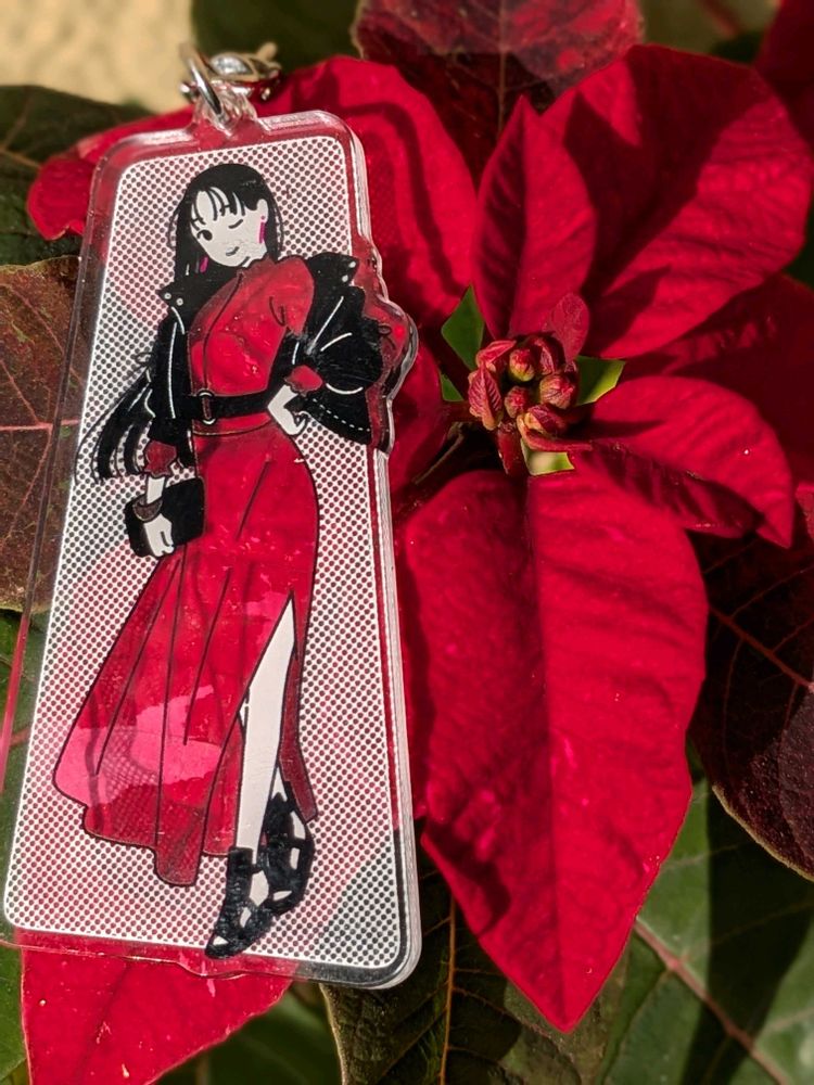 同じイラストのお散歩ちゃんキーホルダーでも合わせる花により美しさ変わりますね