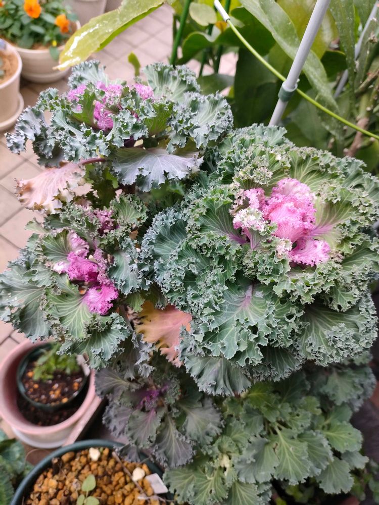 葉牡丹も挿せば増えるよ、寄せ植えに切ってはメンバーに入れていたら、いつの間にか増えちゃって😁