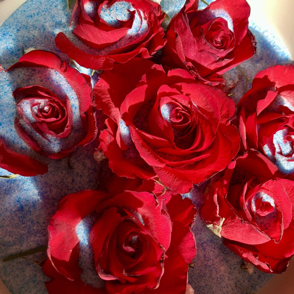 今回は花の部分だけのドライフラワーなのでホーローの丸型のボウルに入れて密閉しました🌹