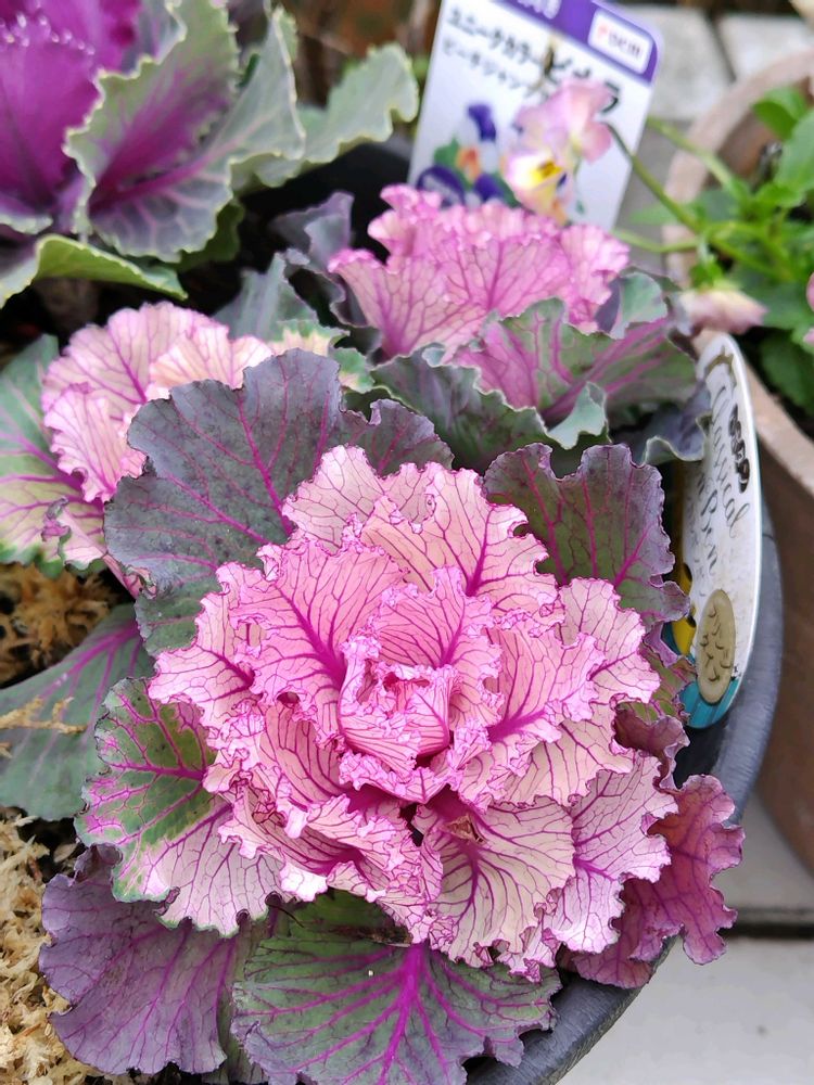 葉脈の感じが何とも素敵でお迎えした葉牡丹です🩷💗💟💚
