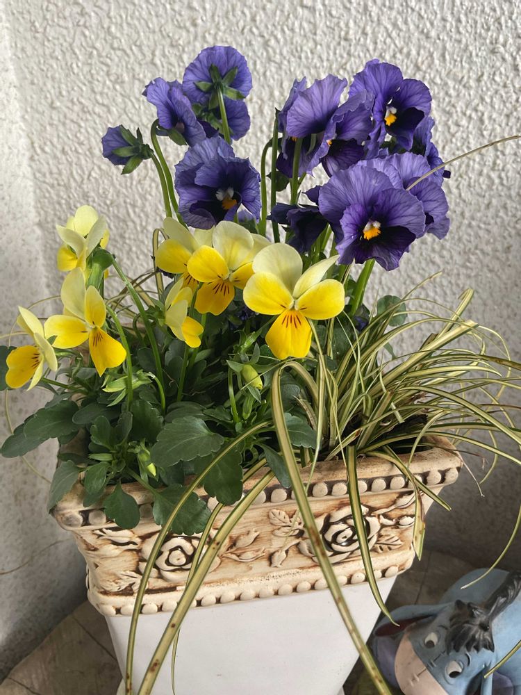 パンジーに 集中していて、意外に たくさん 植えました〜❗️、ただ 単品植えが ほとんどですが、 最後に 小さな
