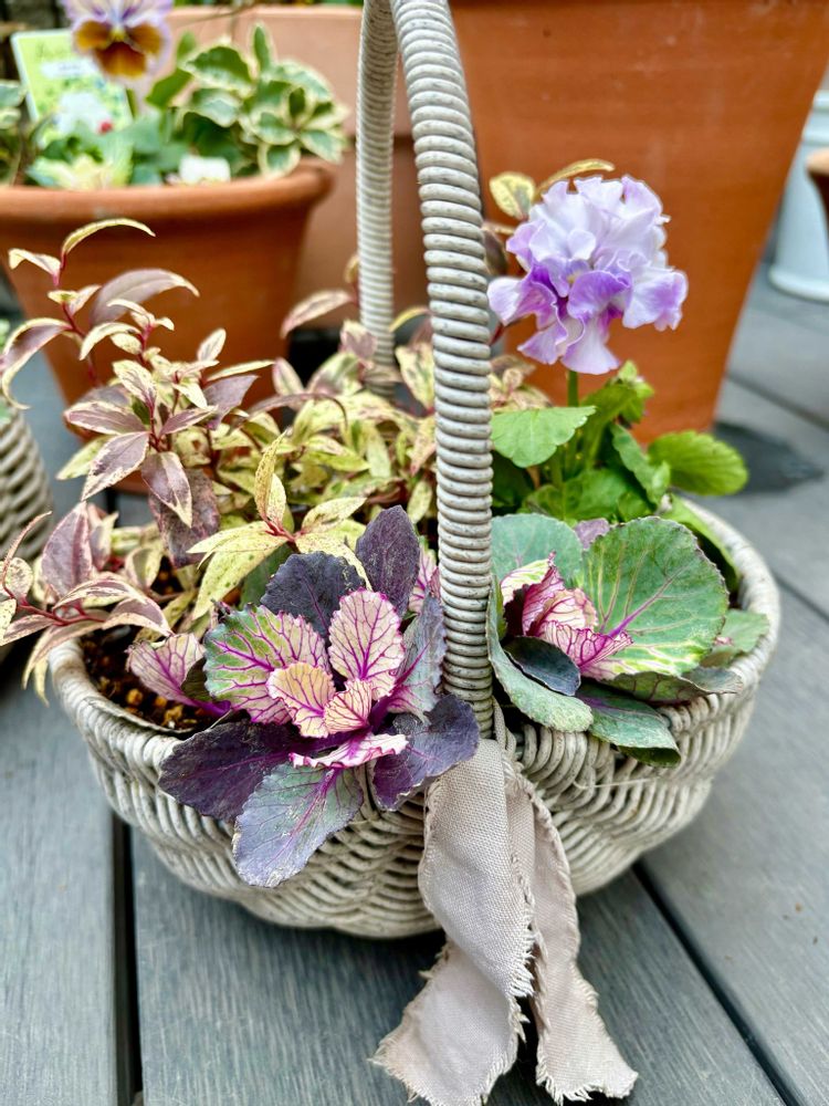 小さなカゴに葉牡丹とリーフだけにしたかったけど