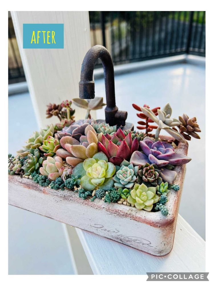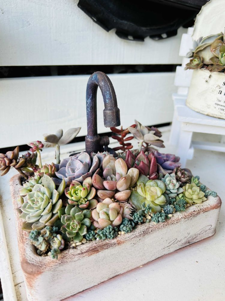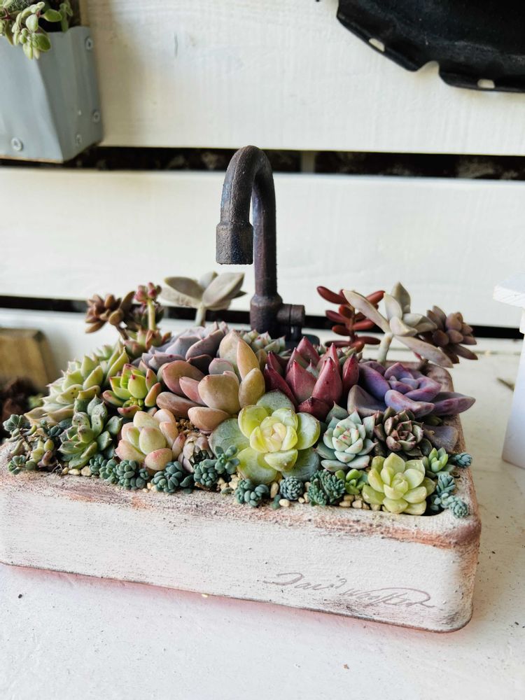 以前作った、100均おもちゃシンクの寄せ植え、あまりに暴れていたのでお直ししてみました♡