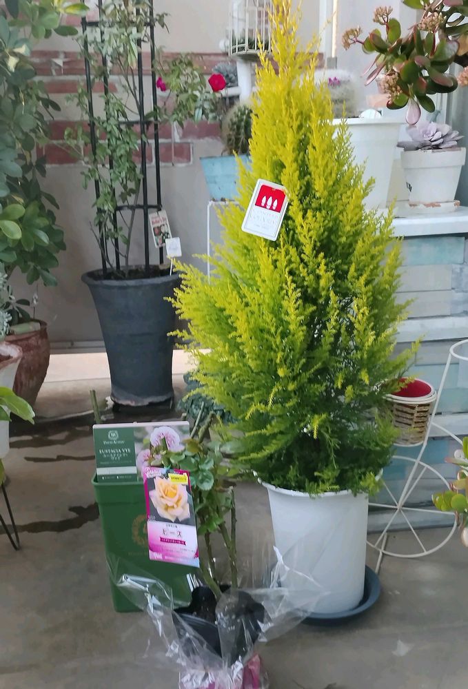 🪴ゴールドクレスト、ピンクのイングリッシュローズ、黄色系バラのピース✌