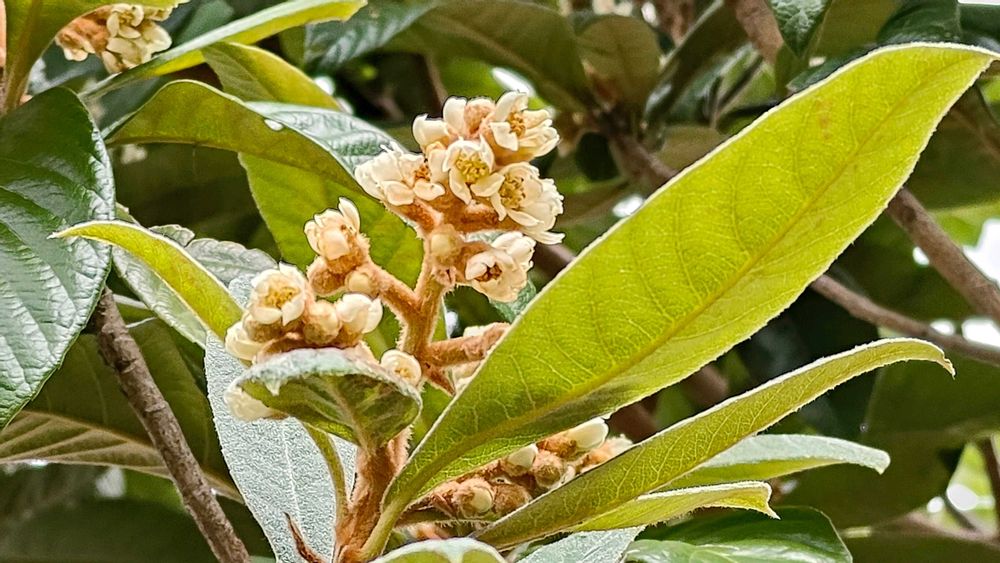 びわの花が咲き始めました