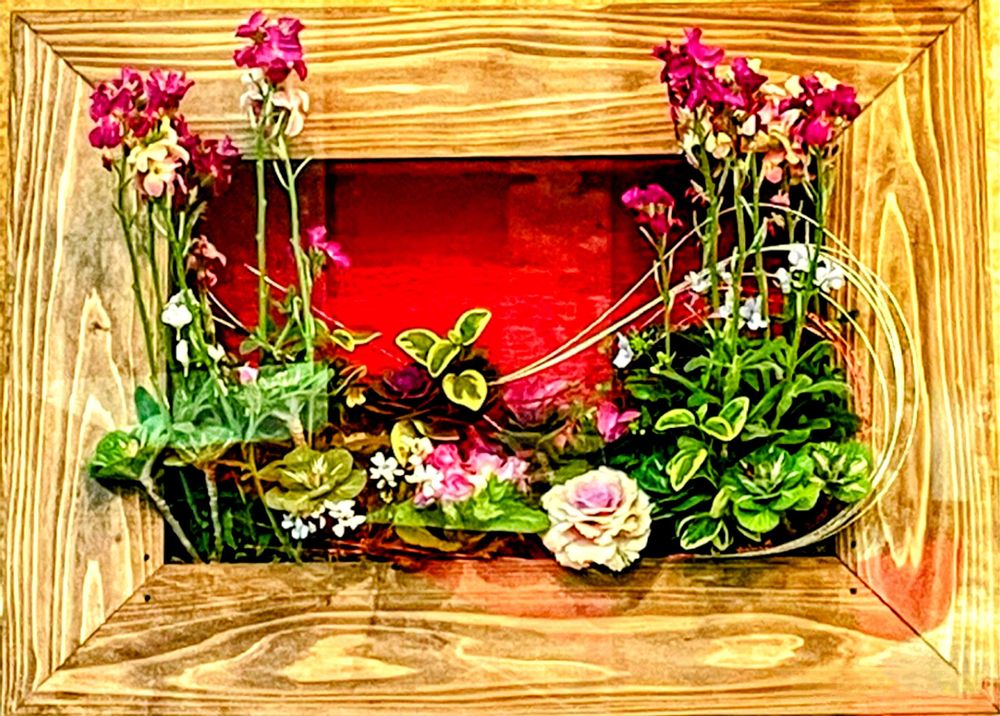 お出かけ先にて,買物途中で,花屋さんの壁の飾りの投稿画像