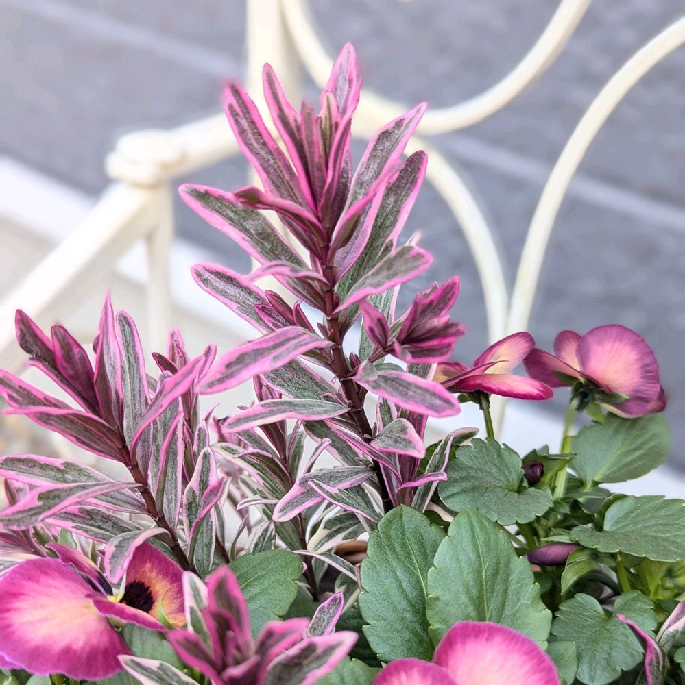 ひと月前は、ヘーベが緑色だったけと、今はピンクが濃くなってきて…
