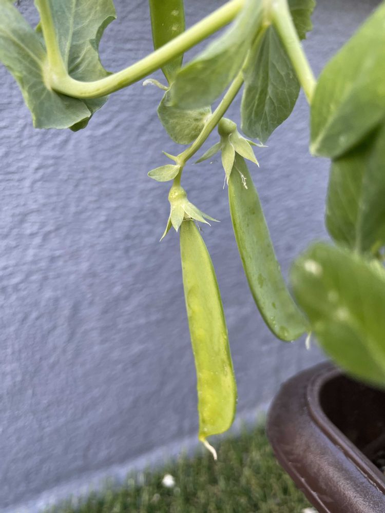 温度かな?支柱と紐でツルを立ち上げさせたのが良かったかもしれません。美笹豌豆🫛