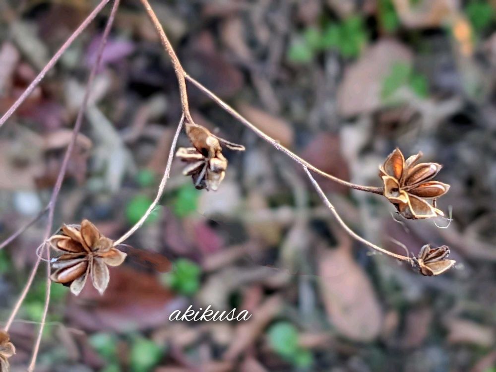 三つ葉下野の小さな花殻が