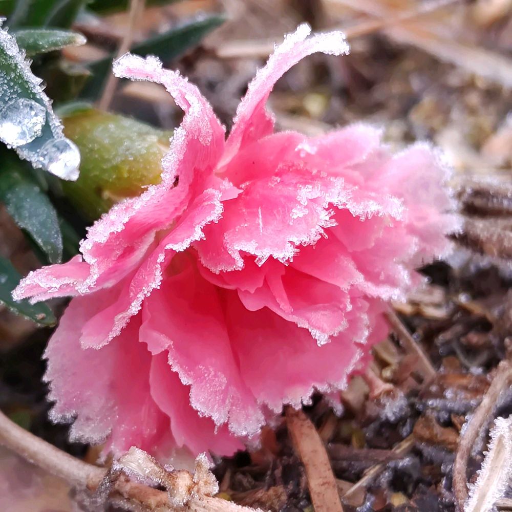 朝外に出たら霜柱で庭の土が盛り上がってました😆💦