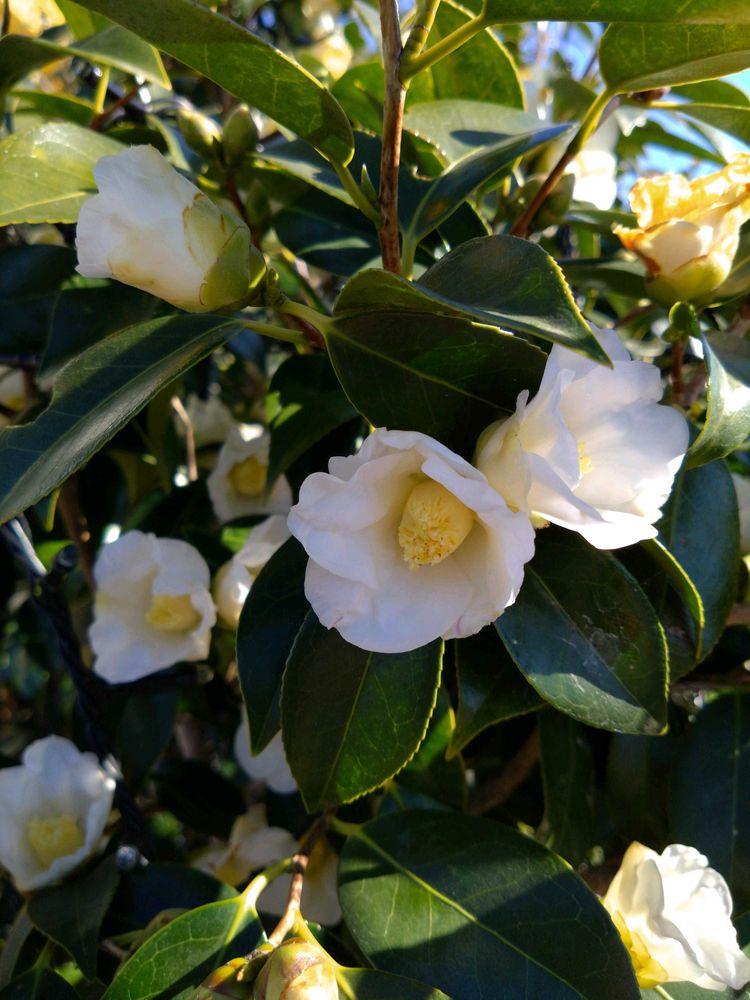 ④オマケの侘助(椿)今年はまだ馬鹿ッ風が少ないからか沢山綺麗に咲いてくれてる😍 白だし地味な花だけど庭の華やぎです🤗💓