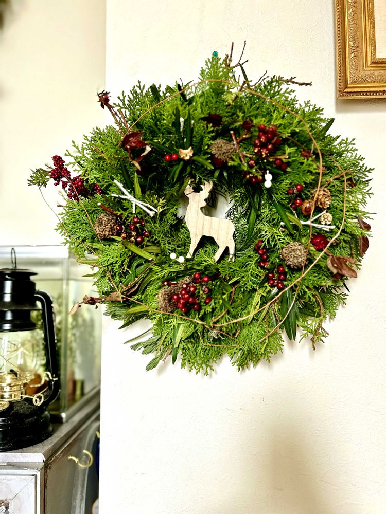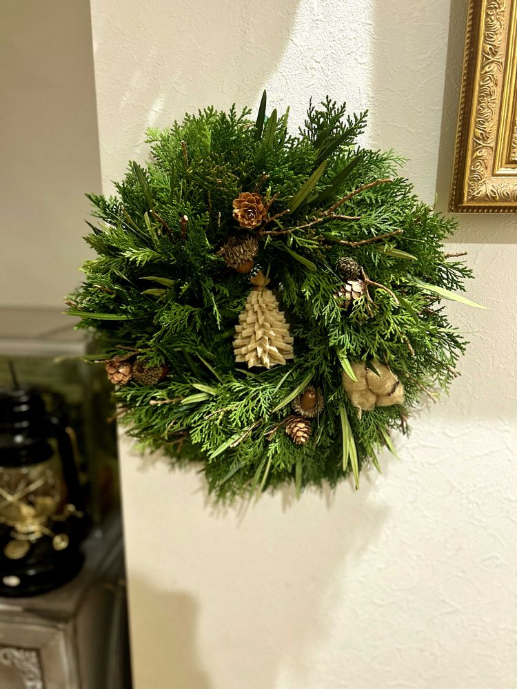 自宅の大きくなったコノテガシワ の葉を使ってたくさん作って見ました、リース作りにどっぷりはまってます😊🙌