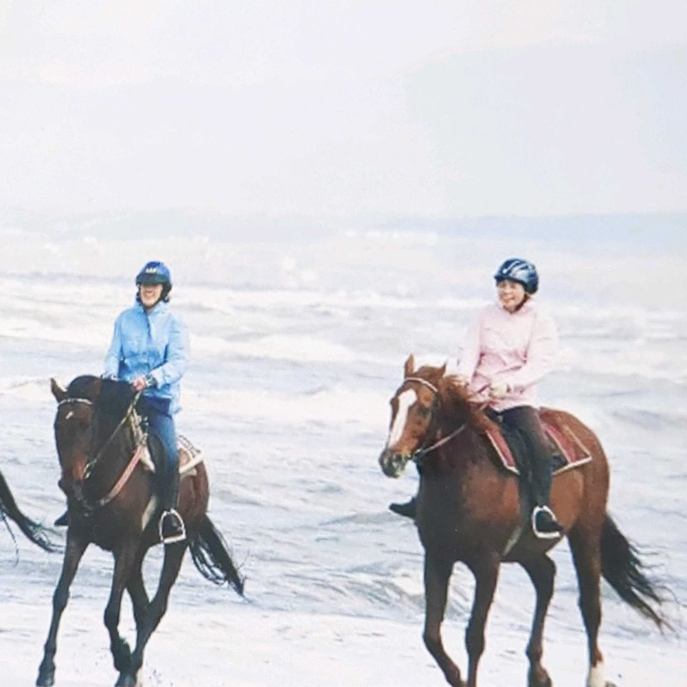 先頭は乗馬クラブのオーナー、🐴友と二人で海岸40㌔チャレンジ‼️私🩷の服です