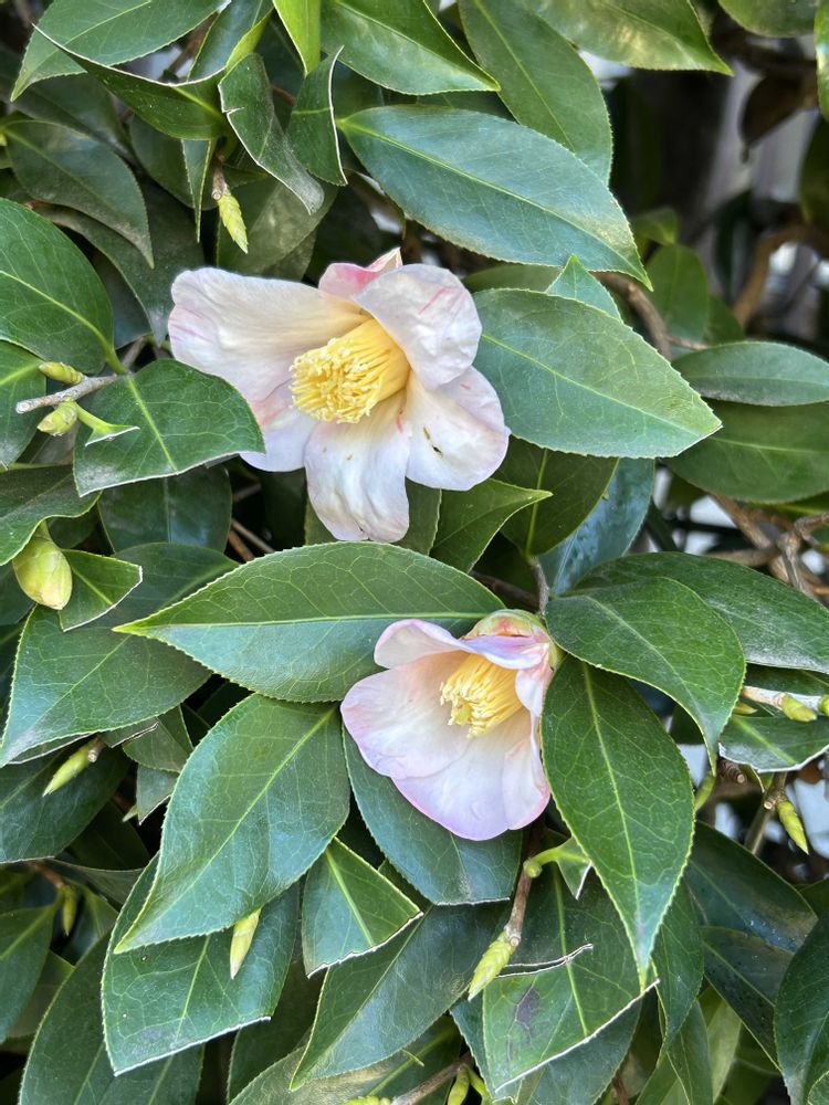 侘助‥‥一重咲きの花で半ばまでしか開かない
