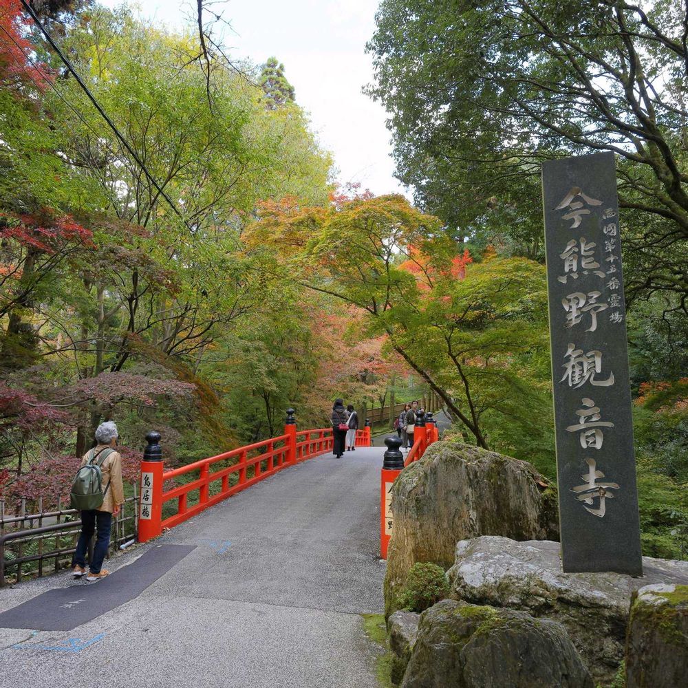 山の中腹の朱赤の明るい塔が今熊野観音寺❓