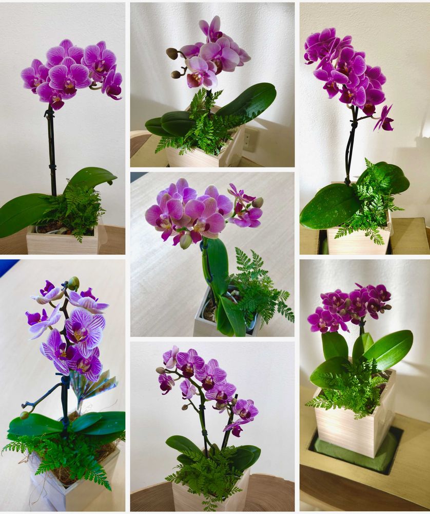前回の胡蝶蘭アレンジを花器に乗せて、生花で豪華にアレンジしてみました🤩