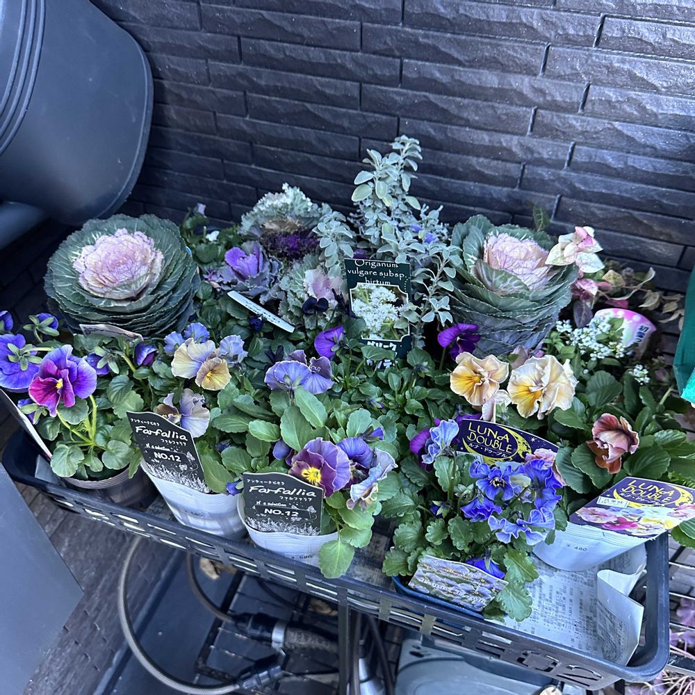 そのついでにお花を見てたら色々欲しくなり、私的には爆買いしてしまいました…このままの配置で何かに植えてもかわいかもwハンギングバスケット検討中です。