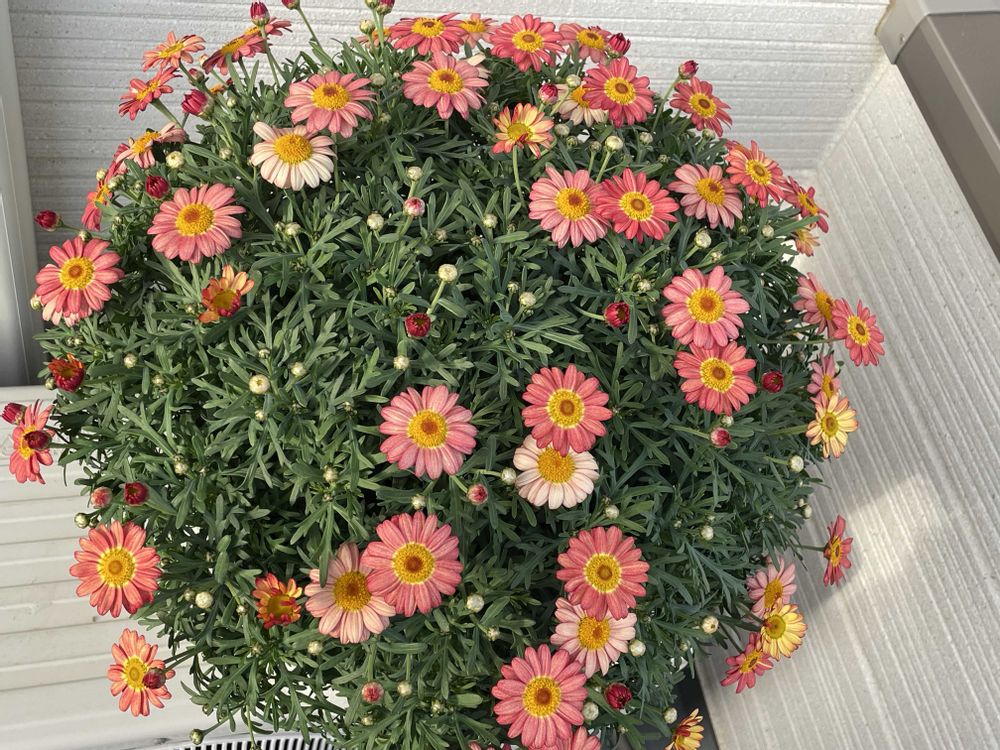 新入りさんのマーガレットは順調なんだけど、やっとこさ夏越しできたマーガレット5鉢、やっと1鉢は蕾が出来てきたけど、あとは葉っぱ☘️だけワサワサ。