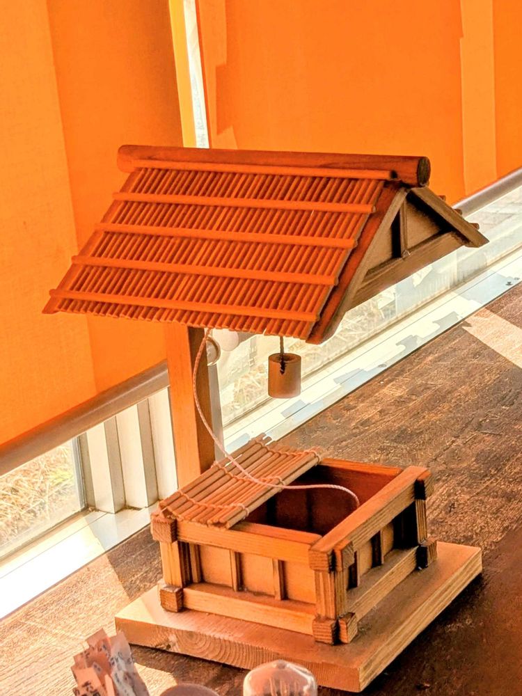 5️⃣病院近くのカフェに木製の井戸のミニチュアがありました