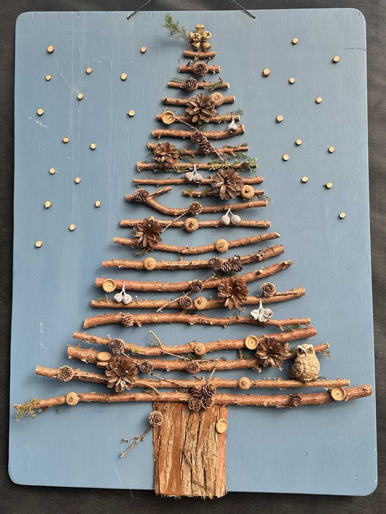 落ちてる木の枝も沢山集めて木の実を飾って夢広がりますょね🥰