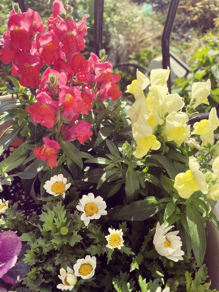 令和6年12月20日(金)🟦☀️🟦 おはよー╰(*´︶`*)╯♡ございます 元気いっぱい 寄せ植えの中から黄色と赤のキンギョソウが増えてます🪴 また どこかで表れてくれるかも〜🤭😊