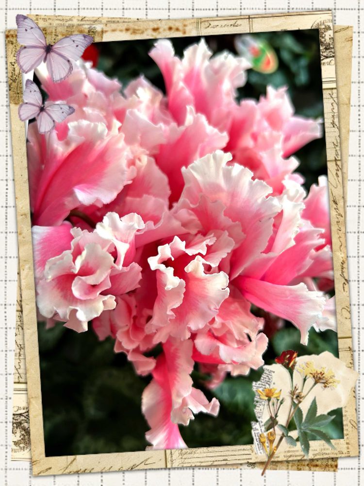 ピンク色・縁どりが白いのが可愛く愛らしいですね。