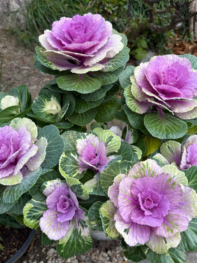 ①②③④ 葉っぱがキラキラ🤩して素敵💓な葉牡丹です。😊✨💓