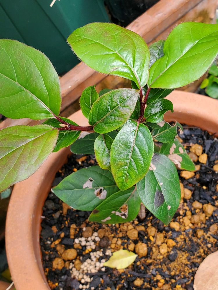 今年5月にビバーナムティヌス苗を迎えたと同時期に、行きつけの美容院でビバーナム(種類不明)を数本頂き、挿し木にしたところ3本成功😆✌️…5️⃣