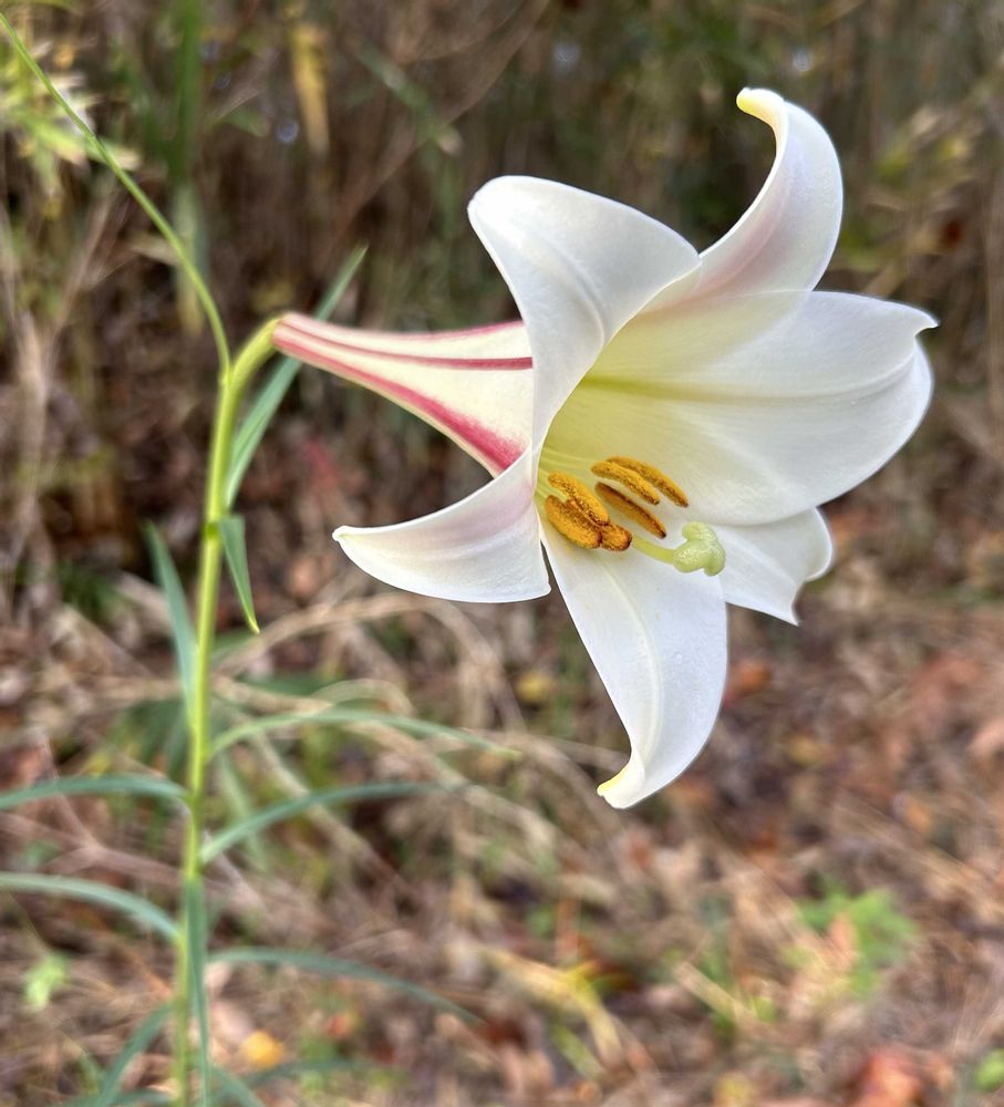 岐阜県の窯元からの帰宅後路に寒いけど、凛々しく咲くリリーが😅ダジャレすみません😁