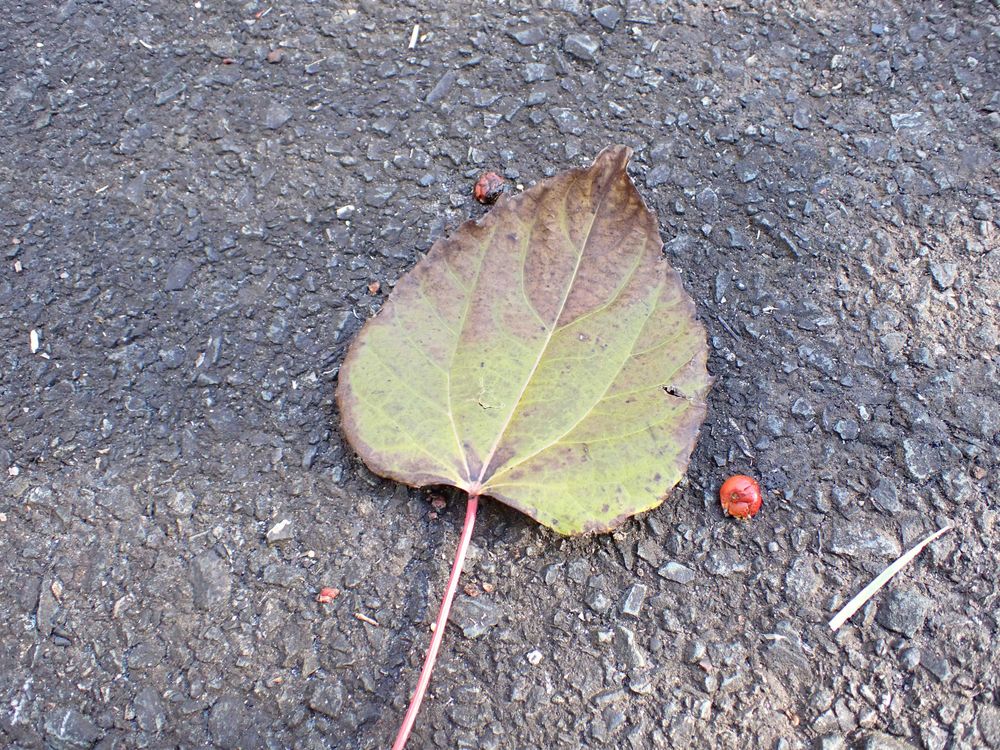 赤い丸い実でした。固かったです。拾って記念撮影しました。(⑤)