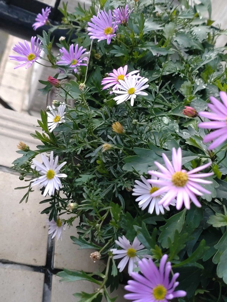 自宅玄関先の姫小菊カラーズ🤍🩷💜