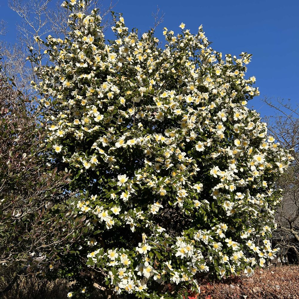 サザンカ🤍古墳の中に満開🌸