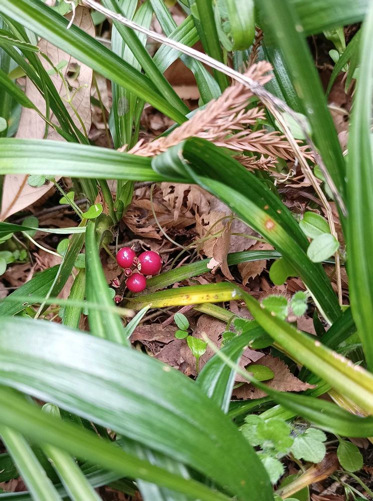 キチジョウソウの実は赤だったのね😅