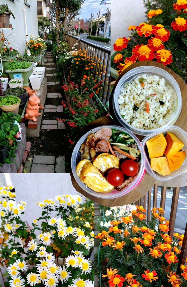 マリーゴールドや菊の花がまだモリモリ咲いています。