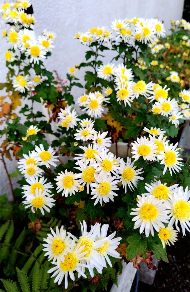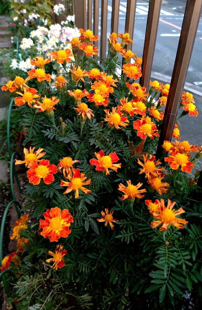 マリーゴールドと菊の花がまだモリモリ咲いています。