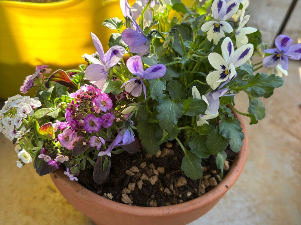 先日購入した花苗を寄せ植え。可愛いらしく仕上がったように思う。
