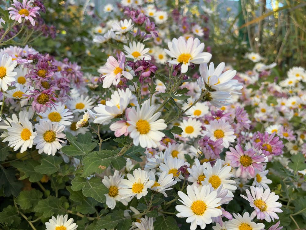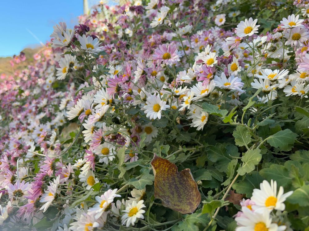 土手の片側が満開の菊で埋め尽くされた幸せ。