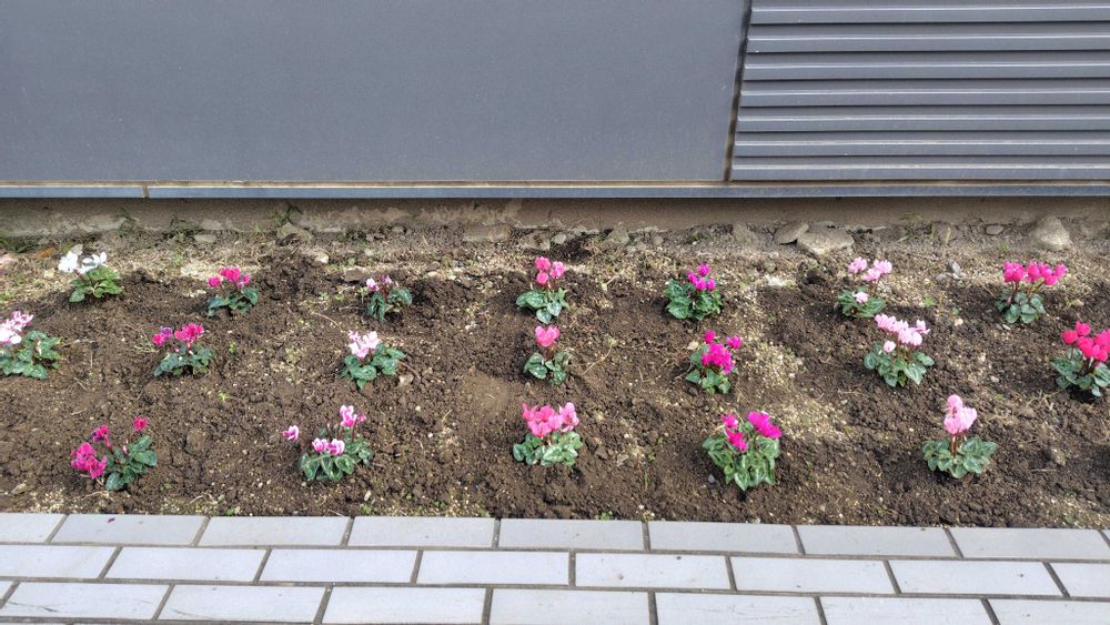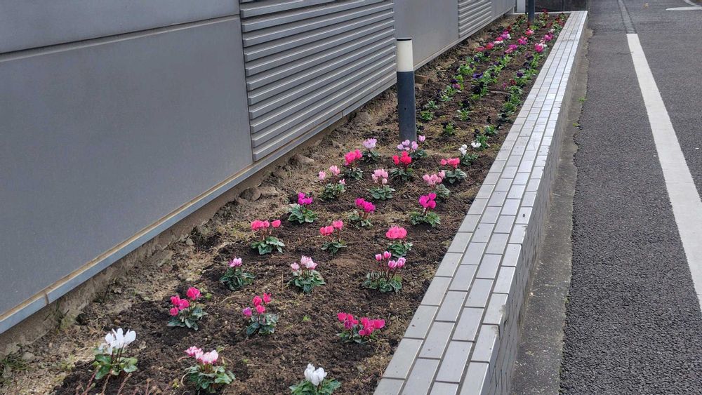 先月、会社の花壇にみんなでシクラメンを植えました。