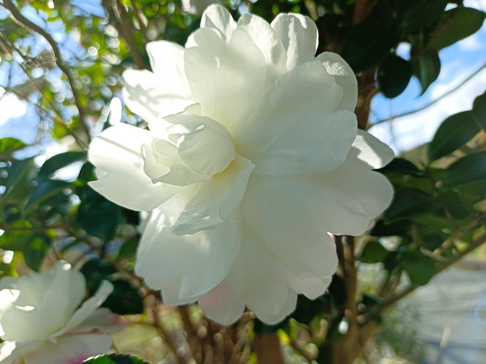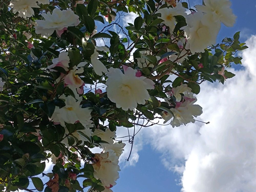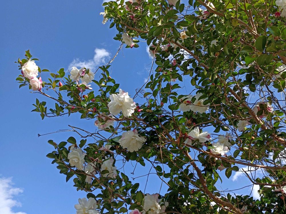 山茶花,青空とサザンカ(白),青空とサザンカ(白)の投稿画像