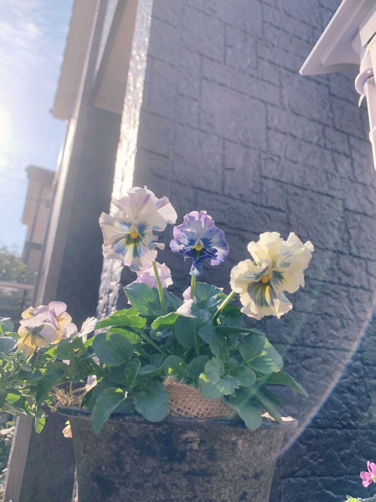 ビオレッタグレイッシュオレンジモンキーズとアンティークフリルパンジーフルールを門柱に並べてみた😙