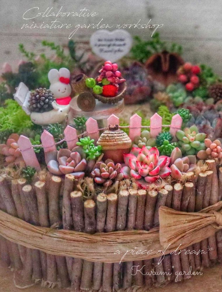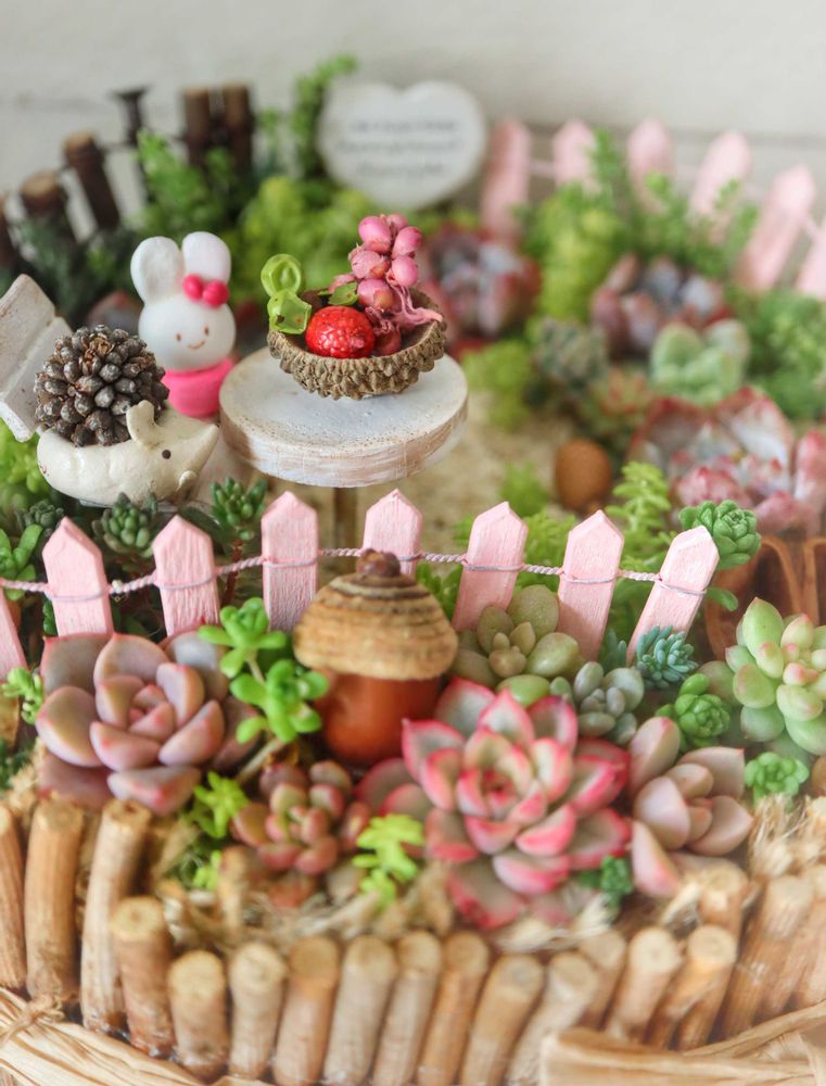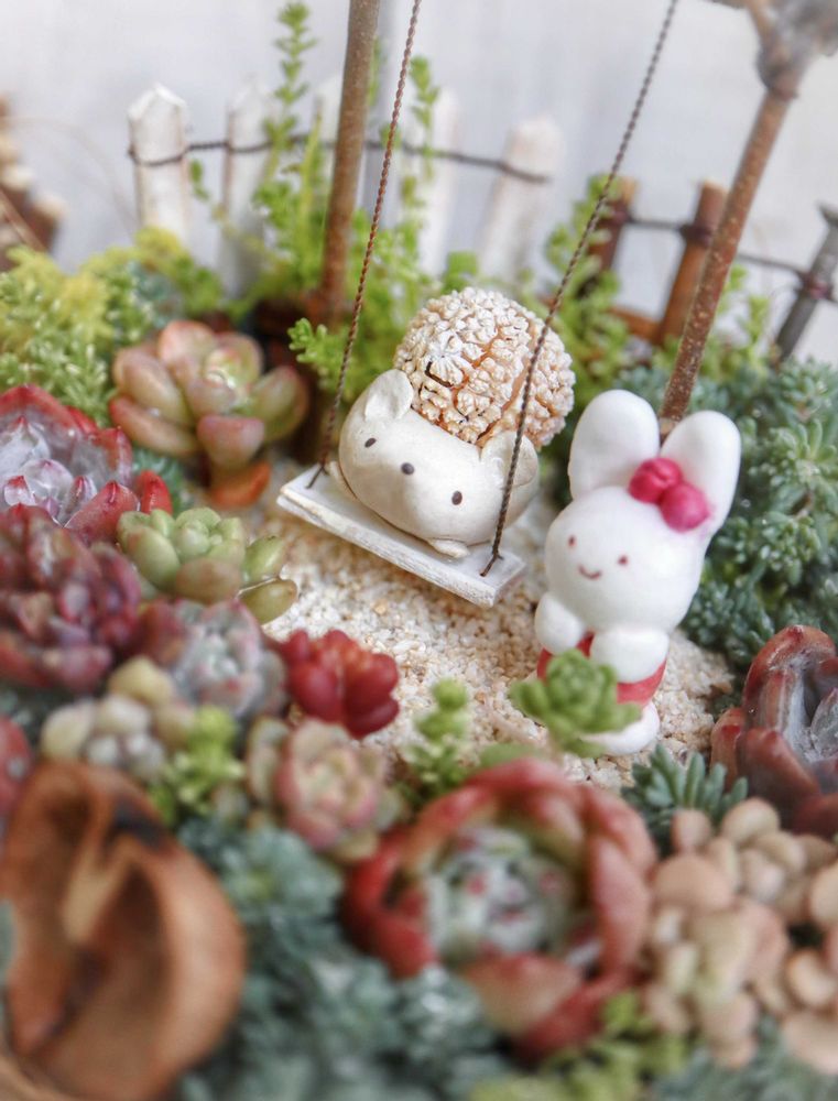 多肉植物の箱庭WSです🌳🐰🦔🌸