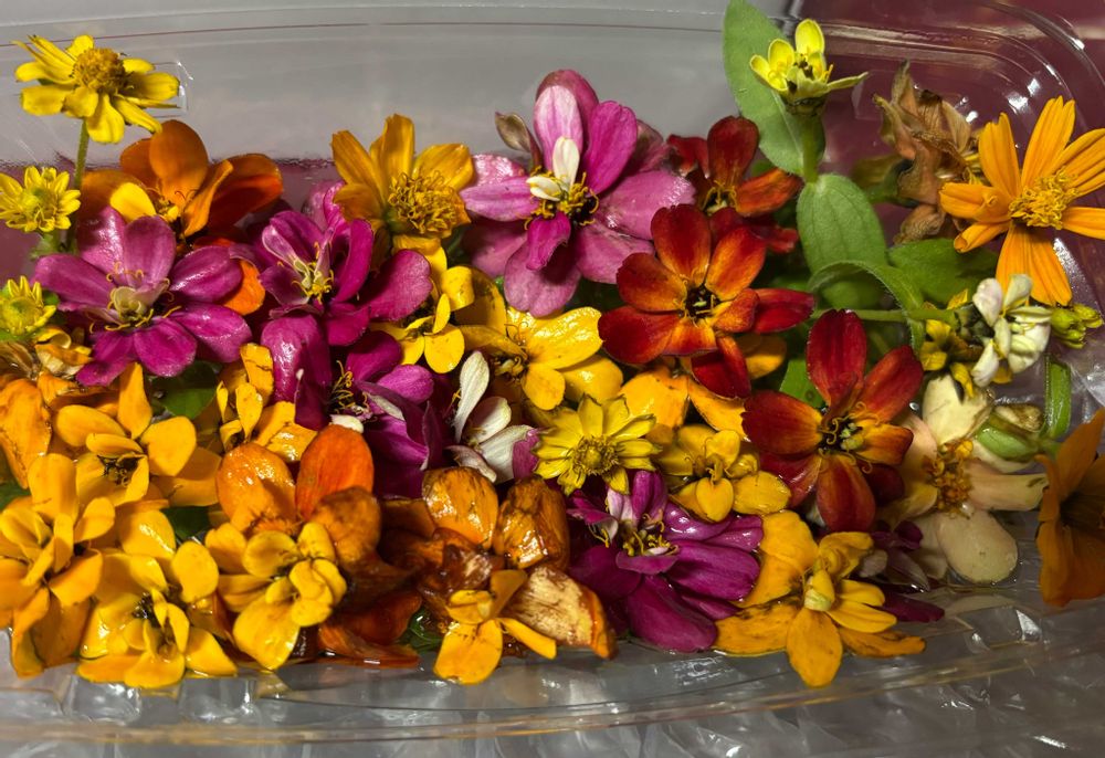 1️⃣かろうじて寒さに耐えてた最後のメランポジウムを花瓶に救済🌼🌼🌼🌼🌼🌼🌼2️⃣瀕死のジニアさんが水切りで復活、リース待ちです。