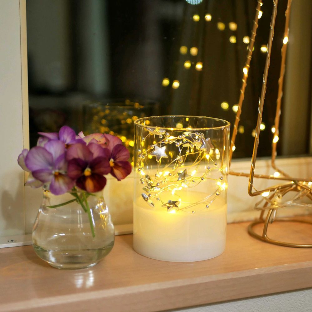 あお。さんのお花と一緒にクリスマスの飾り付け夜バージョンも素敵です🎄💫