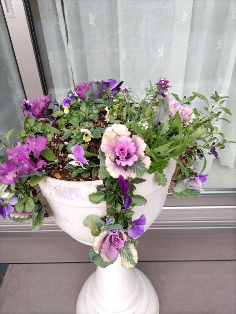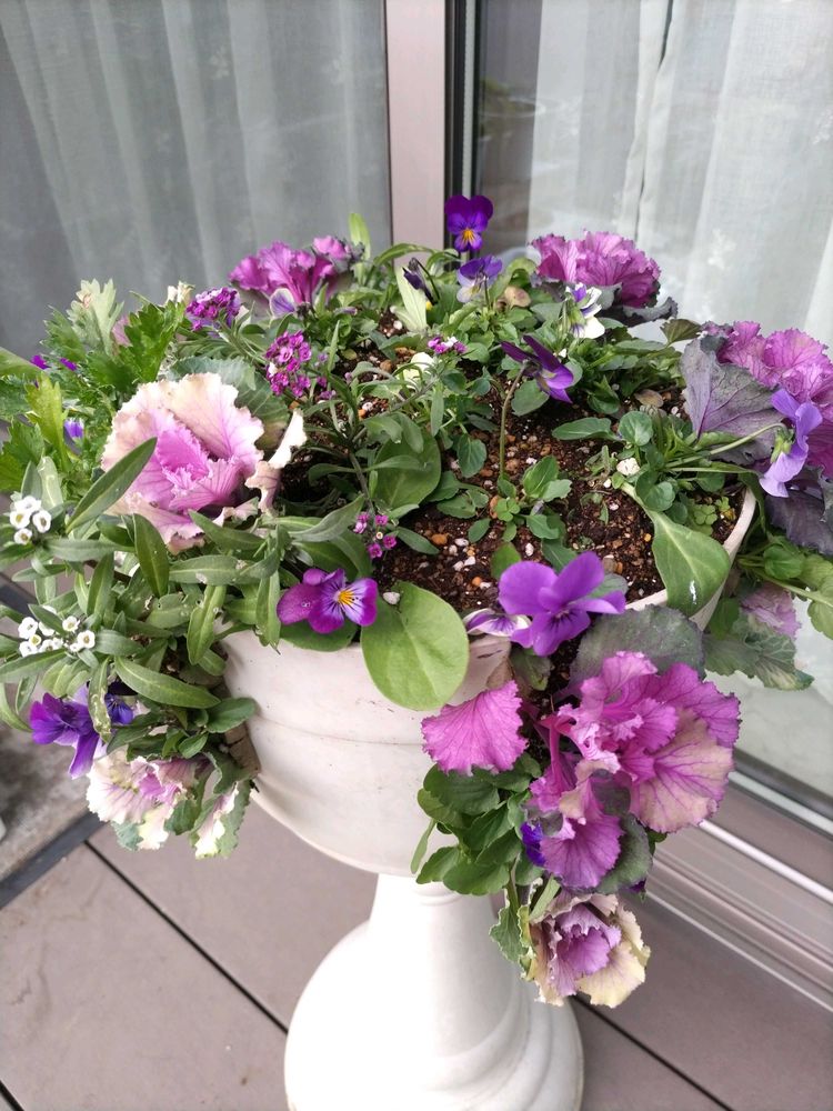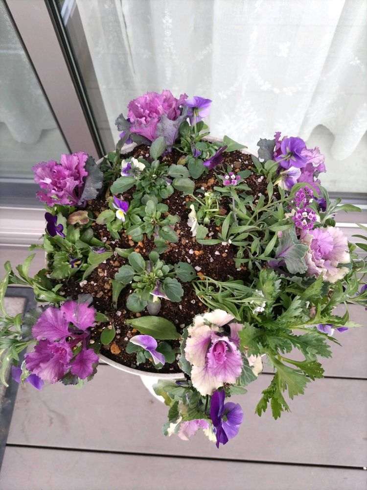 ビオラ、アリッサム、ノースポールを植え込みました。とても楽しみな一鉢になりました💞