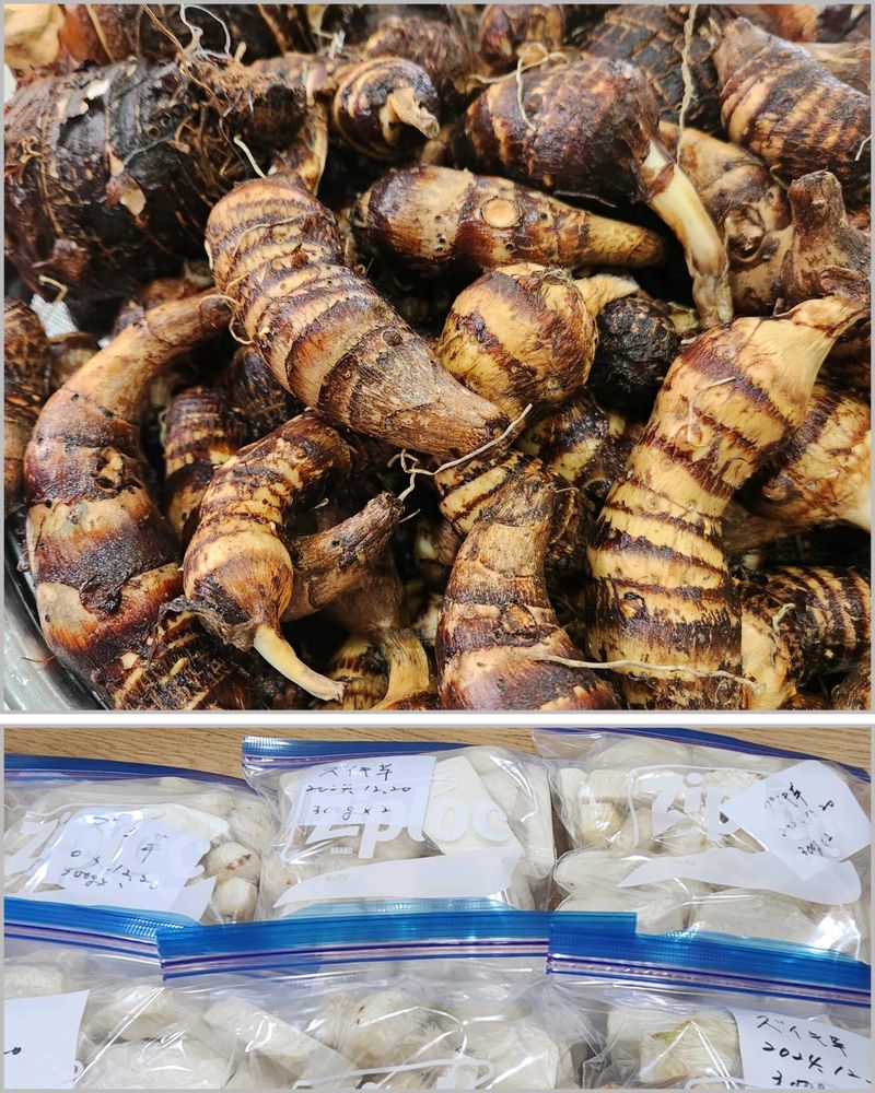 皮を剥き適当な大きさにカットし、使用する一回分づつビニール袋に入れジプロックに入れる。