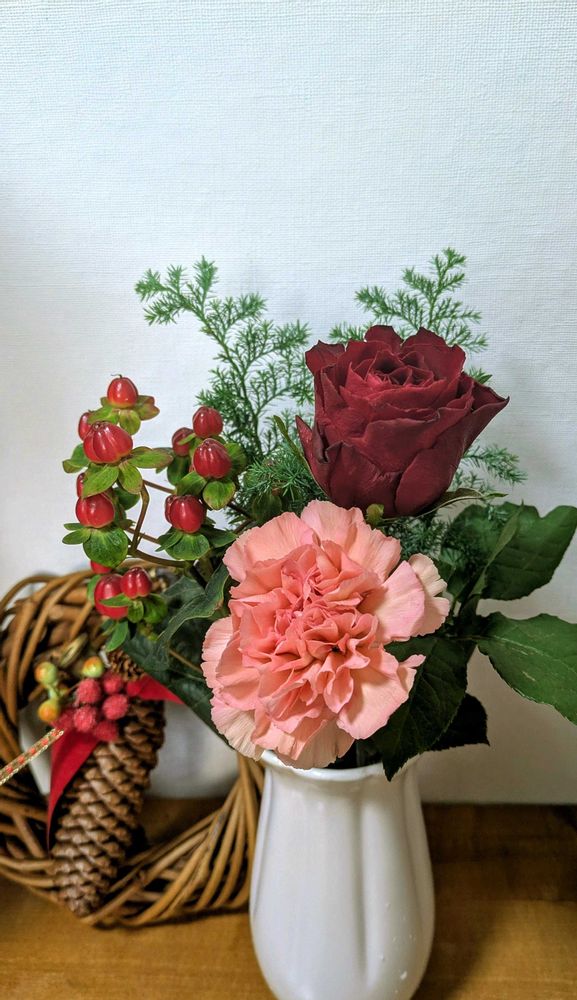 ①玄関のお花もクリスマス仕様になりました🎄🌹