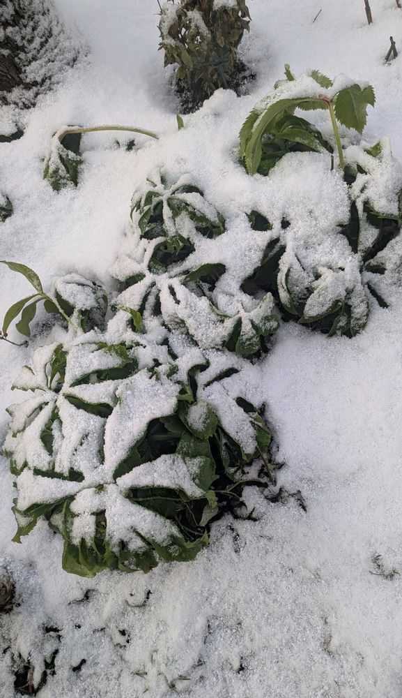 ③庭のクリスマスローズが雪の下に…😆❄️