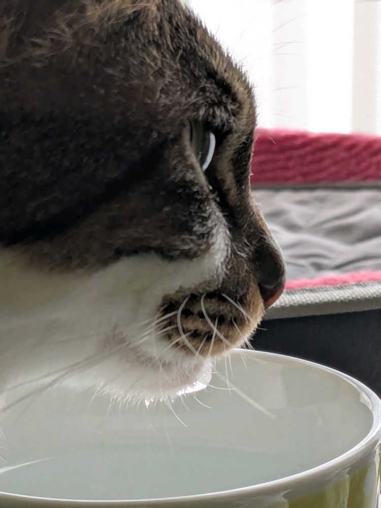 紋ちゃん水の飲み方が独特なんですよ〜毎回顎濡らしてます。(笑)