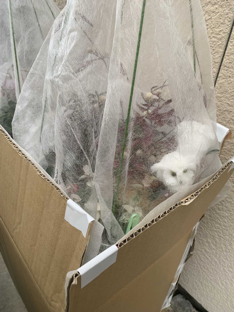 家にミラーマットがあったので段ボールの内ばりにして囲ってみました